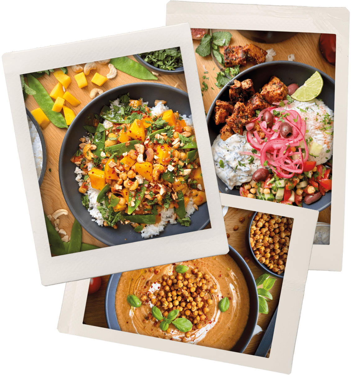 - Im Falle der Hülsenfrüchte: Bohnen, Linsen, Kichererbsen und Erbsen. Zudem Soja in Form von Tofu, Tempeh und pflanzlichen Milch-, Joghurt-, Quark- und Skyr-Alternativen aus Soja.